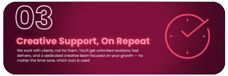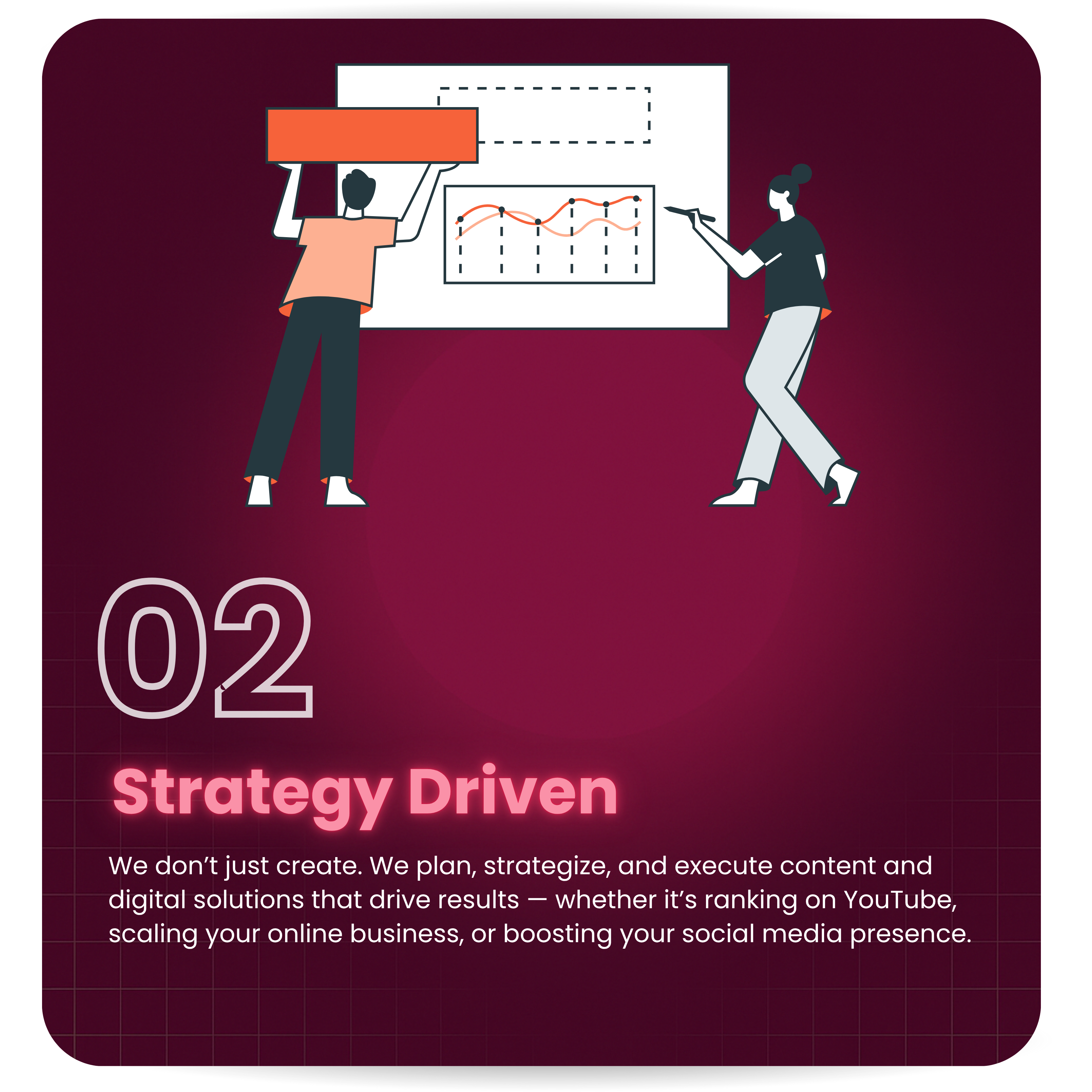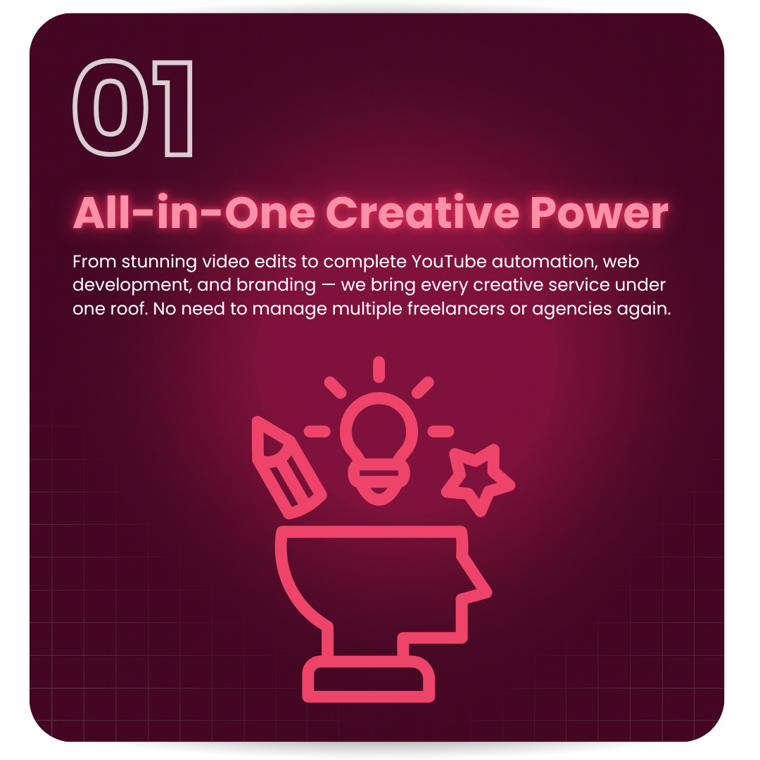 From eye-catching visuals to high-performing websites, we deliver tailored digital solutions that drive engagement and results. Whether you’re a brand looking to stand out or a creator scaling your content we simplify the process, so you can focus on what you do best.